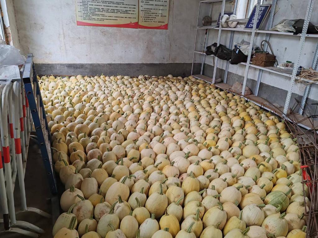 在山东肥城市孙伯镇西北角村,丰收的金丝绞瓜准备外运。(受访者供图)