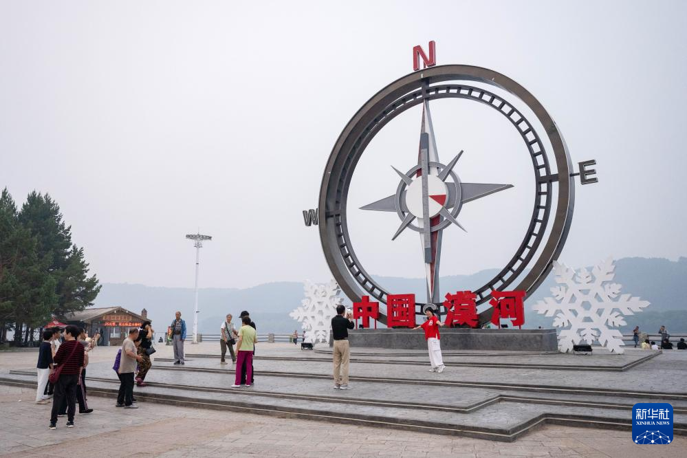 游客在漠河市北极村景区内游玩、拍照(7月1日摄)。新华社记者 谢剑飞 摄
