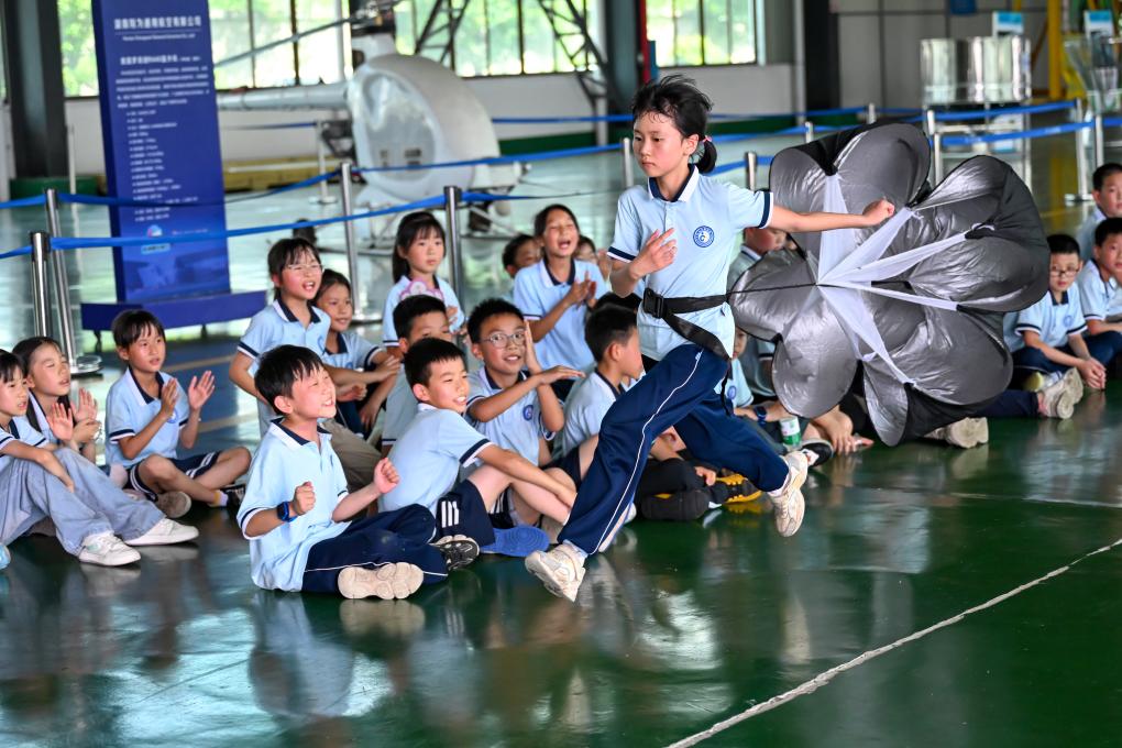 6月13日,在位于湖南株洲芦淞区的翔为通航基地,小学生在进行研学活动。新华社记者 张铖 摄