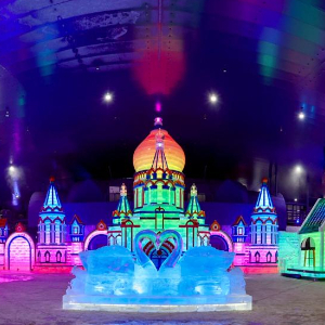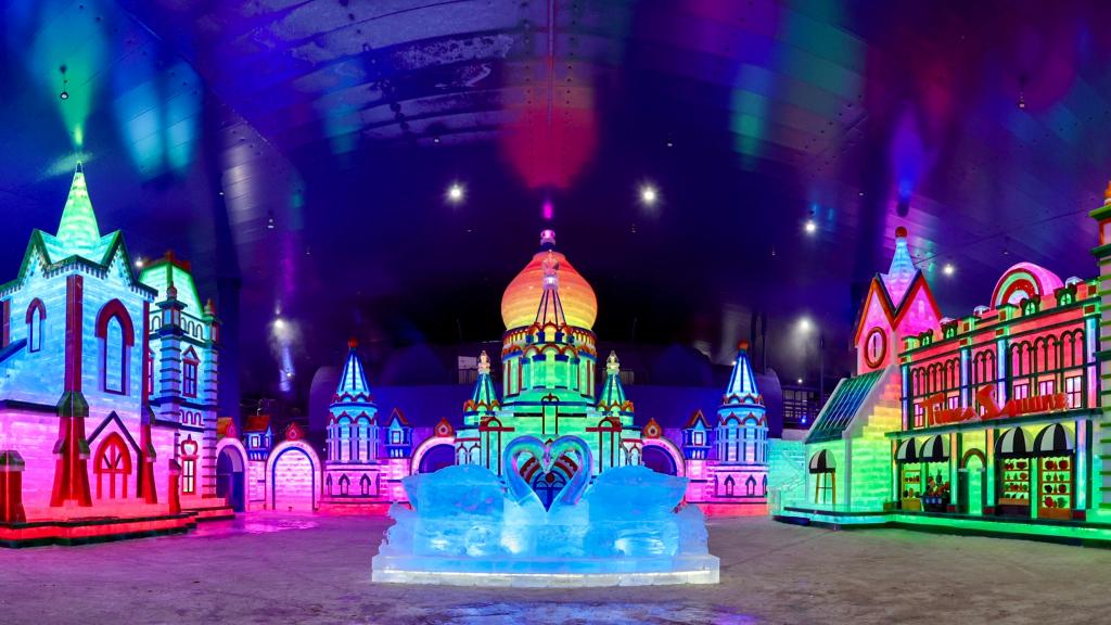 哈尔滨冰雪大世界股份有限公司负责人介绍,这座沉浸式冰雪光影互动体验馆采用国际先进的冰雕雪建技术和工艺,运用艺术手段和声光电效果,集纳冰雪、光影、娱乐、美食、文创等要素,构筑出奇幻炫彩的“冰雪王国”。