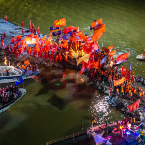 8日22时31分,湖南华容县团洲垸洞庭湖一线大堤上,灯火通明。此刻,随着一车物料倒入,推土机迅速跟进,将物料掺入水中,参与作业的人们高举红旗,呐喊声响彻云霄。226米的大堤决口完成封堵!