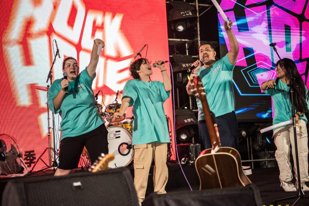 音乐是没有语言障碍的文化桥梁。当主唱开嗓唱出中文歌,台下的美国青少年都伴着音乐的节奏挥舞着手中的荧光棒,音乐声、呐喊声、欢呼声交织在一起,火热的气氛感染着在场的每一位观众。