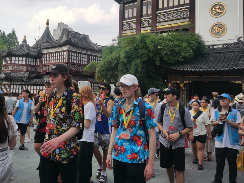 7月7日,一群新西兰学生探访上海豫园。新华社记者 陈爱平 摄