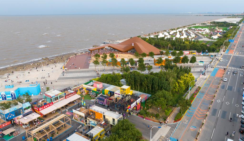 图为6月29日拍摄的天津市滨海新区东疆亲海公园一景(无人机照片)。新华社记者 赵子硕 摄