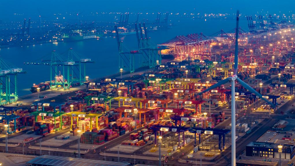 7月3日,天津港“智慧零碳码头”实景(无人机照片)。 新华社记者 赵子硕 摄
