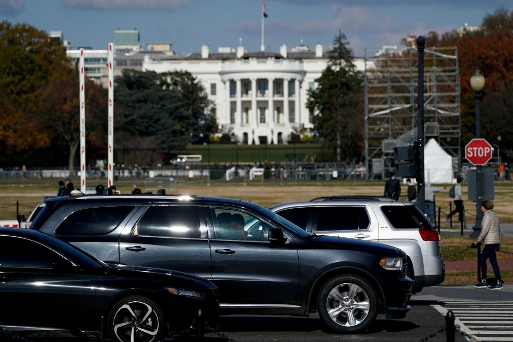 2021年11月23日,在美国首都华盛顿,车辆从白宫附近驶过。新华社发(沈霆摄)