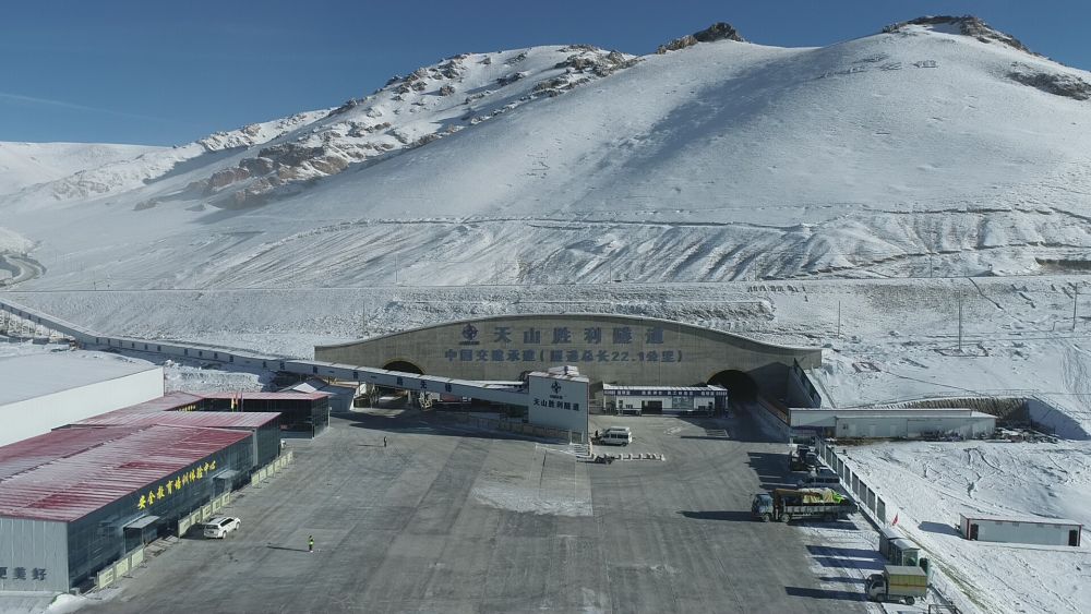这是世界上在建的最长高速公路隧道——新疆天山胜利隧道出口端(2024年4月23日摄)。新华社发(孟根桑 摄)
