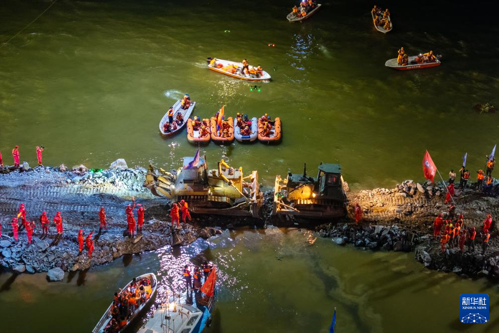 “堵口作业极具挑战。”中国安能集团总工程师张利荣说,三道难题摆在面前:决口宽、水位深、流速快,作业过程复杂;施工工程量大、作业面小,交通不畅;封堵用的块石等物料运距远,供应压力大。