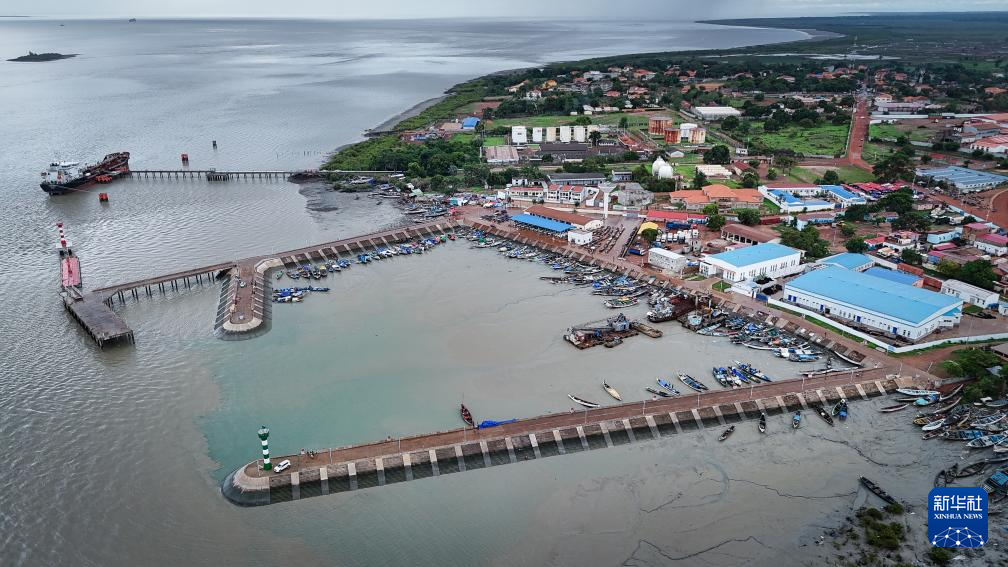 这是7月8日在几内亚比绍首都比绍拍摄的板丁渔业码头(无人机照片)。新华社记者 韩旭 摄