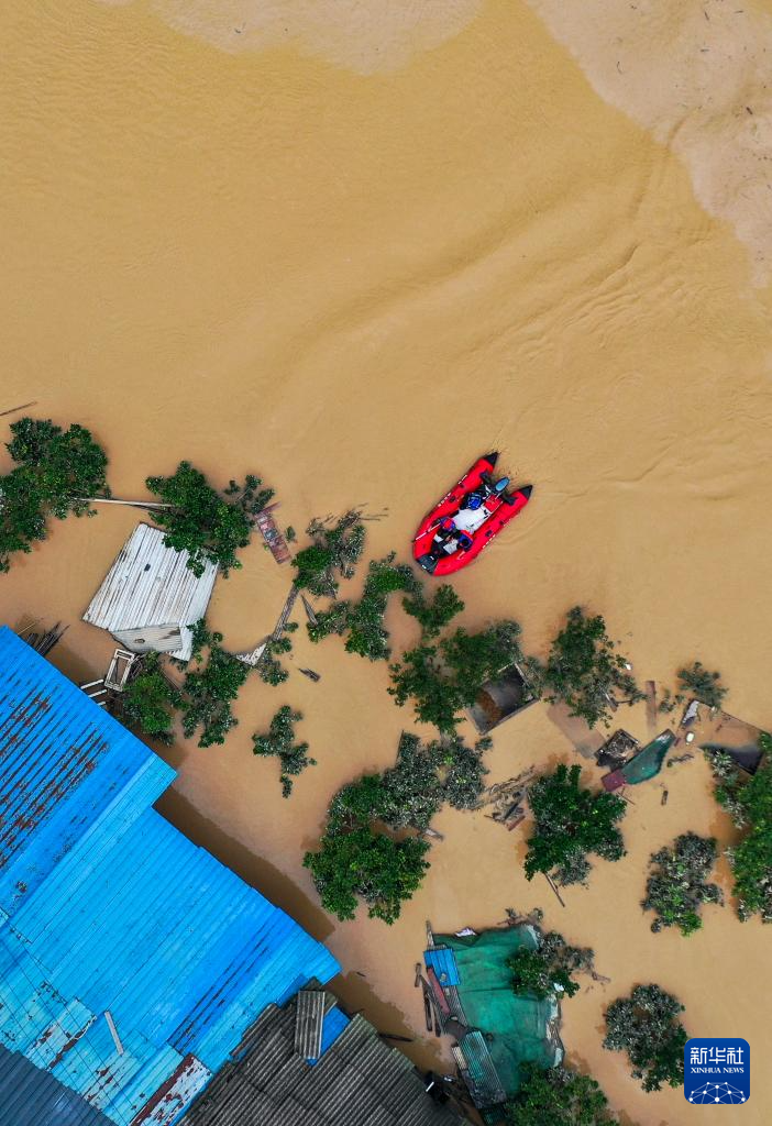 7月11日,救援人员在重庆市长寿区云台镇开展救援作业(无人机照片)。新华社记者 王全超 摄