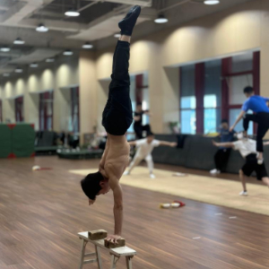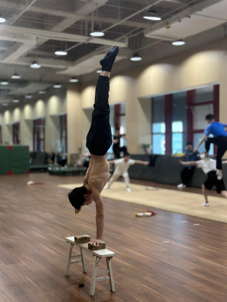 杂技演员范一旦正在练基本功。新华社记者 袁慧晶 摄