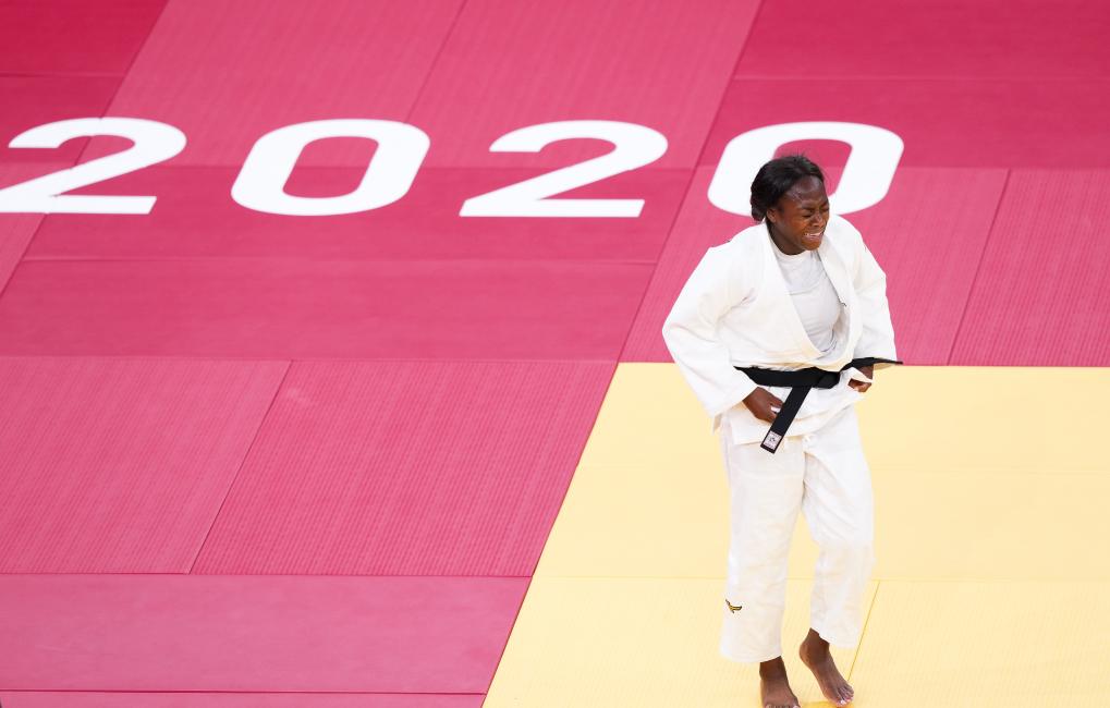 2021年7月27日,法国选手克拉丽丝在东京奥运会女子柔道63公斤级决赛中夺冠后喜极而泣。新华社记者 刘大伟 摄