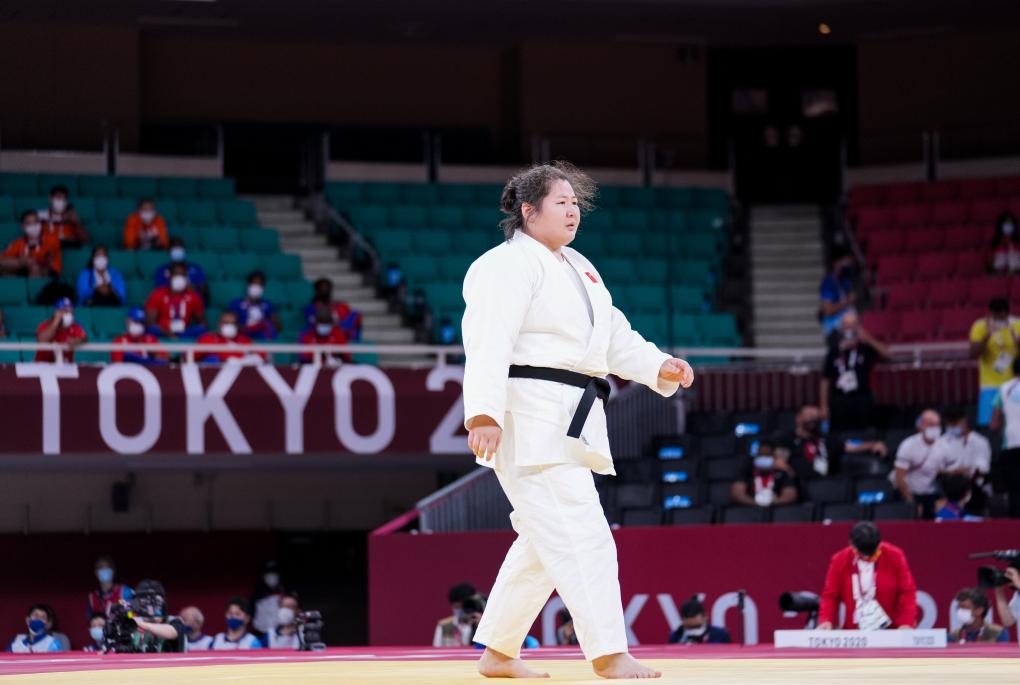 2021年7月30日,中国选手徐仕妍在东京奥运会柔道项目女子78公斤以上级铜牌战中。新华社记者 刘大伟 摄
