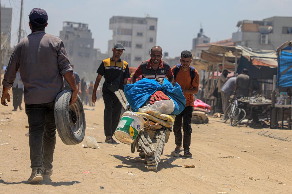 7月2日,在加沙地带汗尤尼斯,巴勒斯坦人被迫按照以军要求离开该地区。新华社发(里泽克·阿卜杜勒贾瓦德摄)