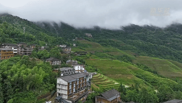 这是大寨村“山中已千年”观景民宿改造前后对比拼版照片(无人机照片)。