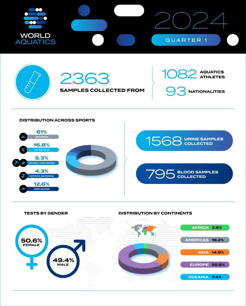 据了解,这份来自世界泳联的兴奋剂检查“成绩单”是各国(地区)运动员接受国内国际赛内和赛外检查的数据汇总,巴黎奥运会前夕更是加大了对中国运动员的检查力度。面对频繁的交叉式兴奋剂检查,中国游泳运动员高度配合,而且团结一心、斗志昂扬。正如覃海洋所言:“让实力打破一切质疑!”