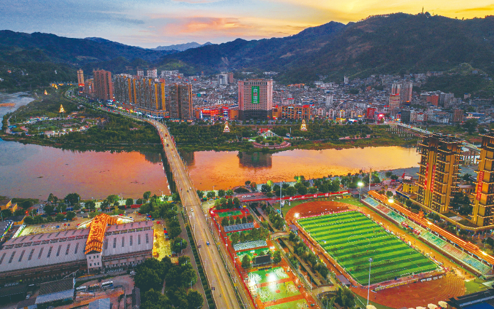 寨蒿河从村超球场旁奔流而下。新华社发