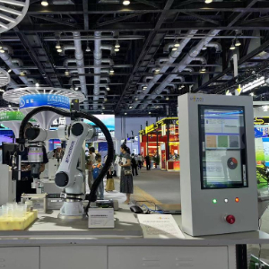 这款机器人不只是能完成称重工作这么简单,它仅展示了“黑灯实验室”的部分功能。北京戴纳实验科技有限公司副总裁张京军介绍,在“黑灯实验室”里,通过人机交互将样本信息与条码绑定,机器人能自动响应、扫码判断要做哪些检测项目,并完成自动拧开样本瓶盖、提取样本进行检测、将样本瓶放到回收区等系列操作。整个机器人系统可以部分甚至完全代替人工完成实验操作。