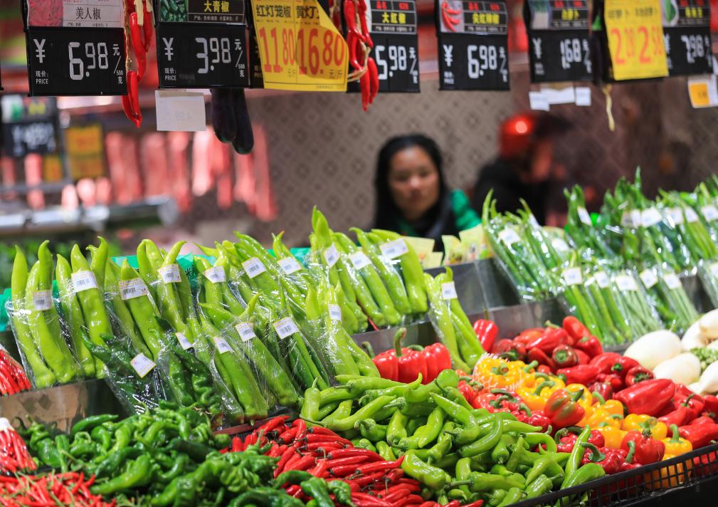 3月9日,消费者在贵州省从江县一家超市选购蔬菜。新华社发(罗京来摄)