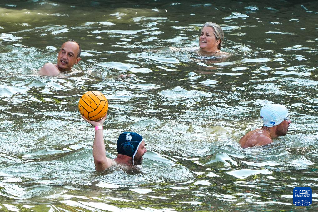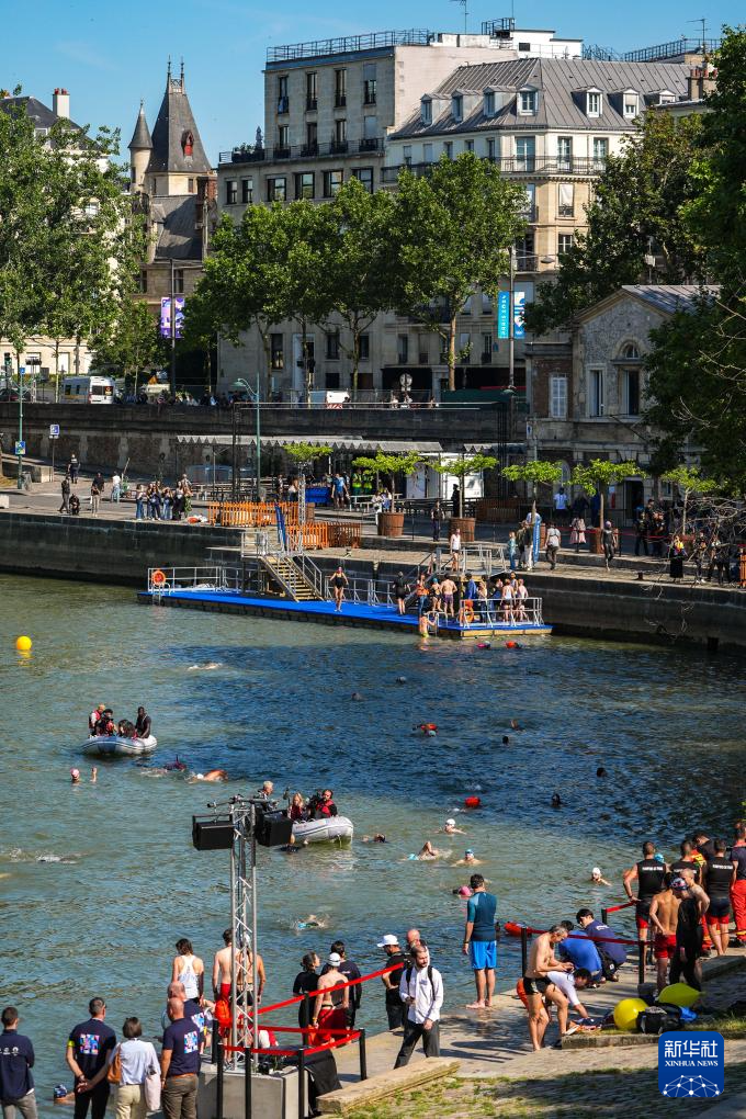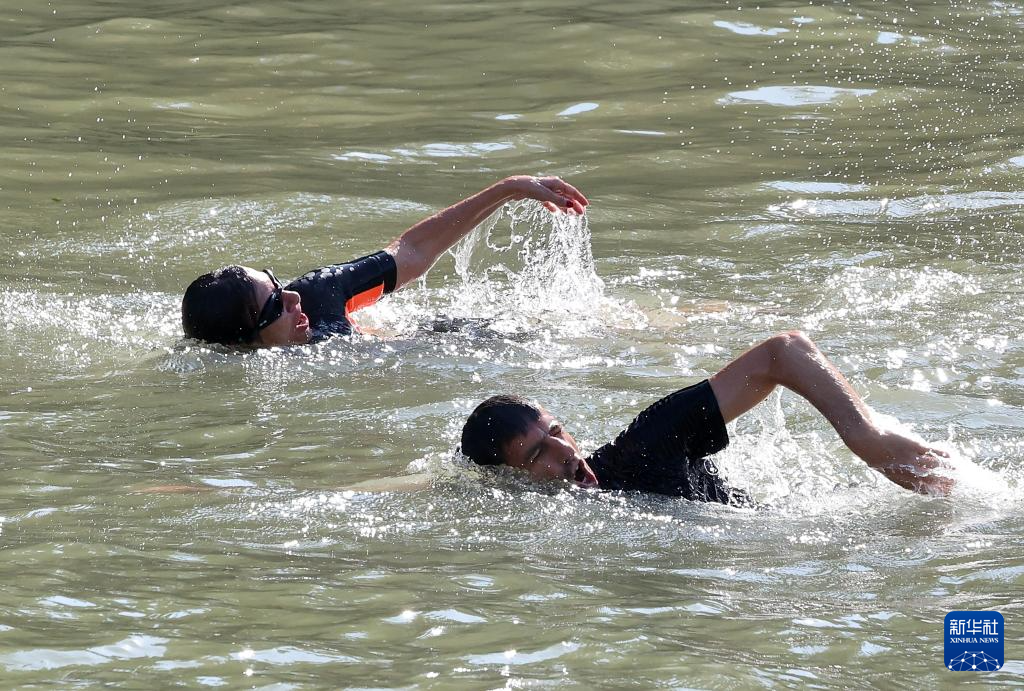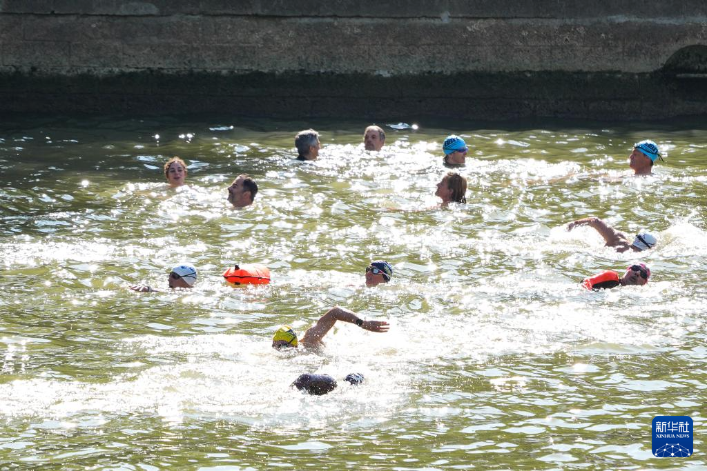7月17日,巴黎奥组委主席埃斯坦盖在塞纳河中游泳。新华社记者 高静 摄