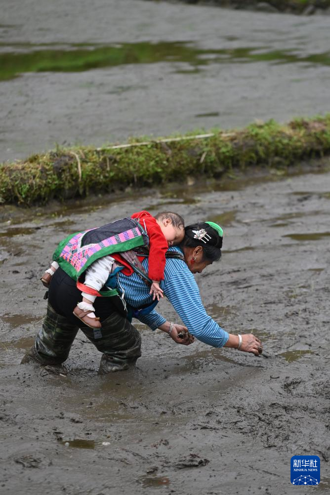 在乌英屯,村民在田间插秧(2024年4月12日摄)。
