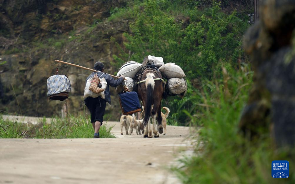乌英屯村民潘忠庆赶着牲口上山干活(2024年4月12日摄)。