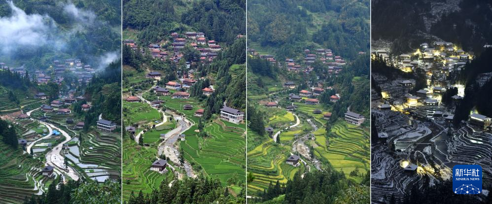 这是2021年至2024年间拍摄的乌英屯的春、夏、秋、冬(从左至右)。