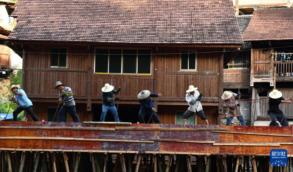 乌英屯村民们在建新木楼(2022年7月21日摄)。