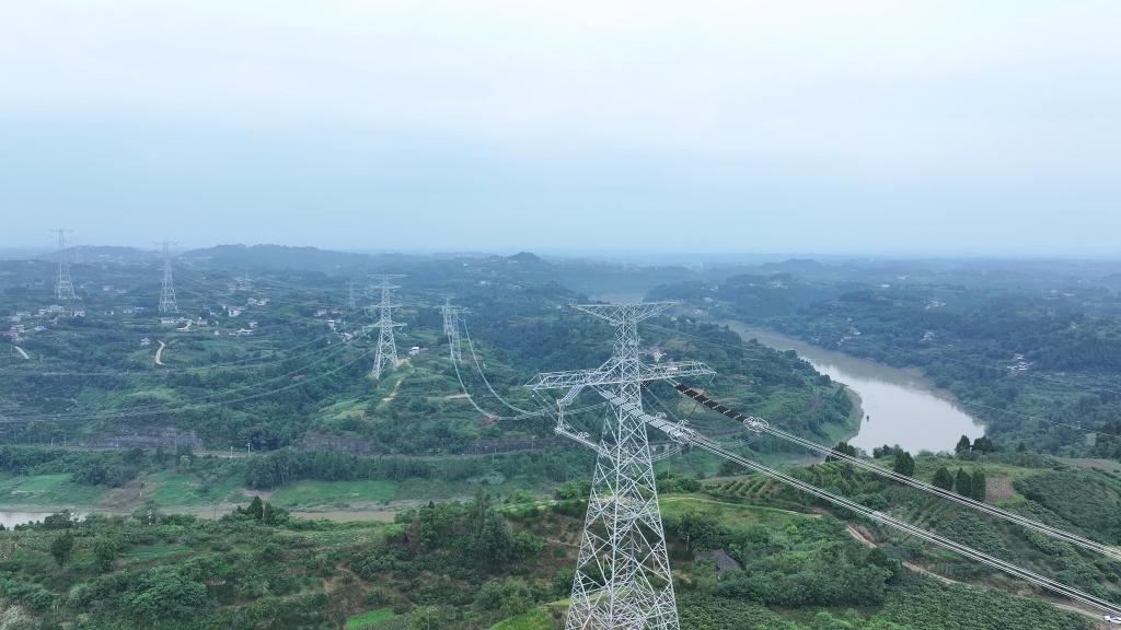 7月18日,在四川资阳,金沙江上游-湖北±800千伏特高压工程川13标段完成导线展放工作,标志着金沙江上游-湖北特高压工程首个标段顺利贯通。