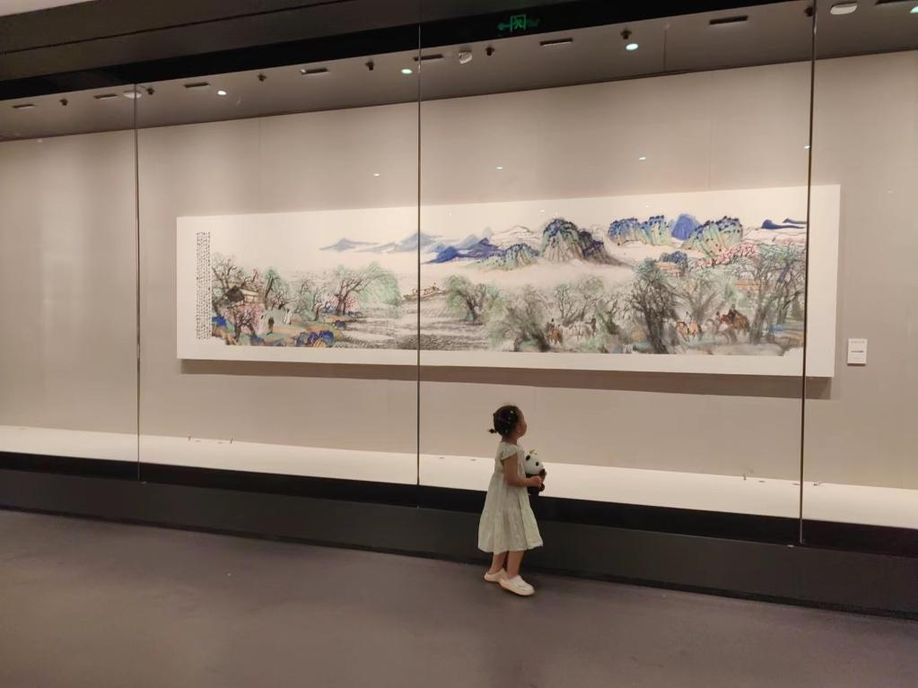 来自北京的游客王女士特意带11岁的孩子来观展,看着女儿兴奋地在画作前拍照、记笔记,王女士非常欣慰。“孩子刚学过杜甫的诗句,趁着放暑假,带她来一场诗意盎然、活力满满的别样之旅。”王女士说。