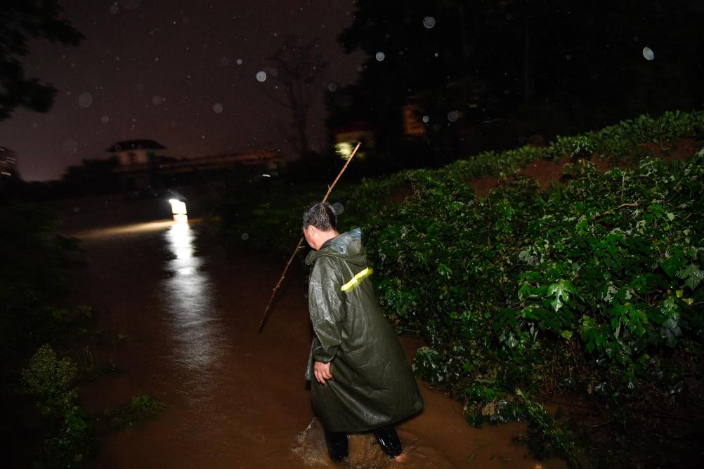 自7月中旬启动防汛Ⅰ级应急响应以来,蹚水过沟、走村入户、巡河查险、劝阻群众、背人转移、挖淤排水……今年59岁的他与社区工作人员一起已连续工作五天四夜。