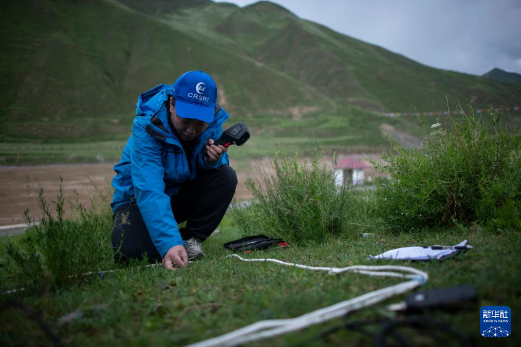 7月20日,在直门达水文站,长江科学院水土保持研究所任斐鹏在进行植被生态和水土流失调查。新华社记者 伍志尊 摄