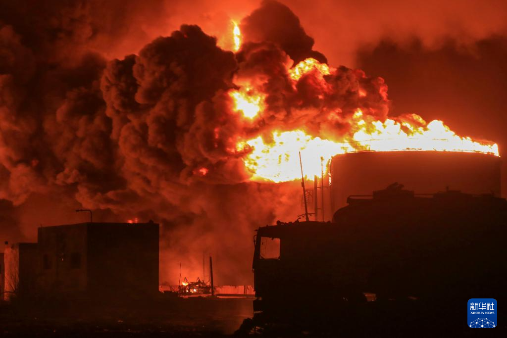 这是7月20日在也门港口城市荷台达地区拍摄的一处正在燃烧的储油罐。新华社/美联