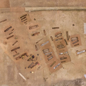 从空中俯瞰位于成都蒲江县的大型船棺墓群(2017年3月1日摄)。