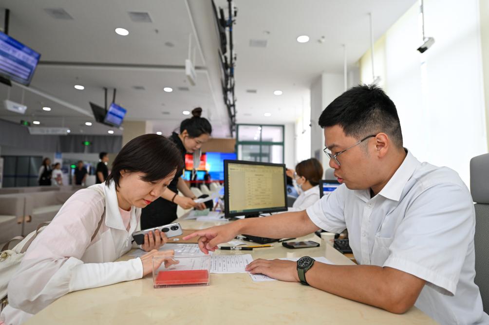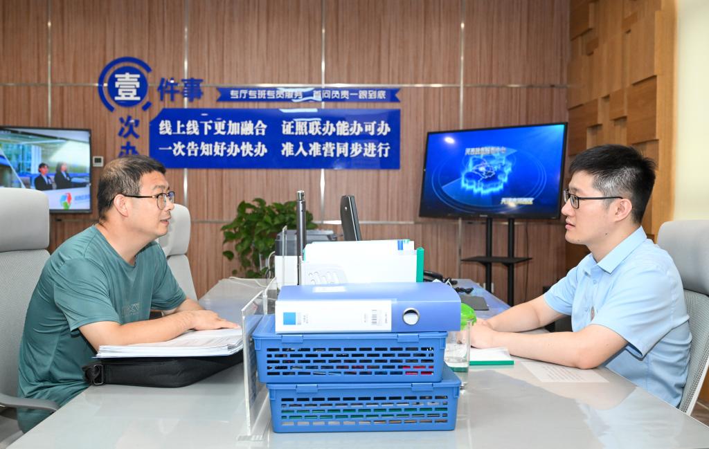 办理人在天津市河西区政务服务中心“跨省通办高效办成一件事”服务专厅内办理业务(7月16日摄)。