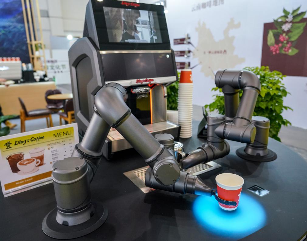7月23日,在第八届中国—南亚博览会咖啡产业馆现场,全自动咖啡机器人正在制作咖啡。新华社记者王静颐 摄
