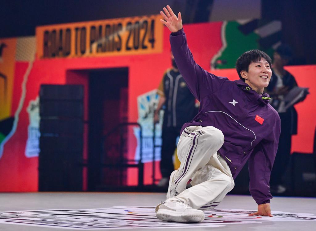 6月23日,中国选手曾莹莹在巴黎奥运会资格系列赛布达佩斯站霹雳舞比赛中。她最终获得了巴黎奥运会的“门票”。新华社记者 连漪 摄