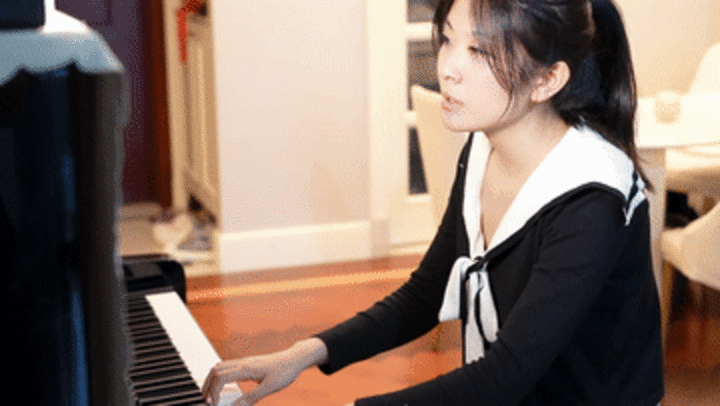 2024年5月27日,郁晓楠在家中练琴。新华社记者 周畅 摄