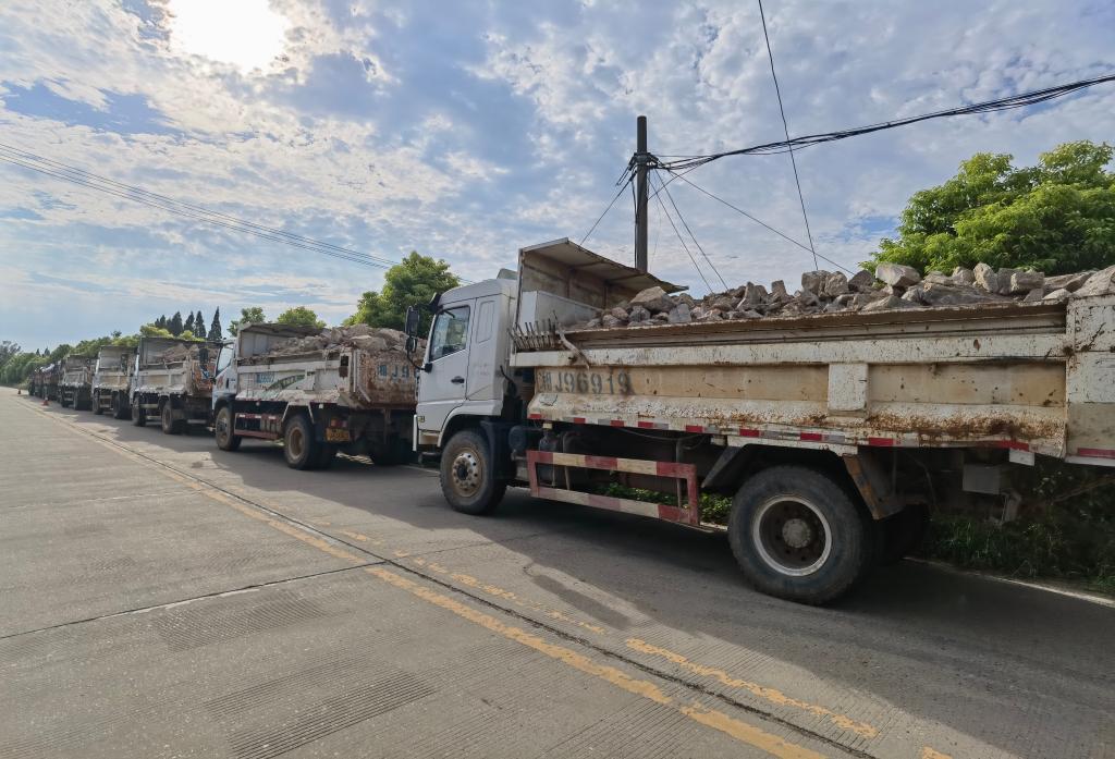图为载有石块的货车。新华社记者黄韬铭 摄