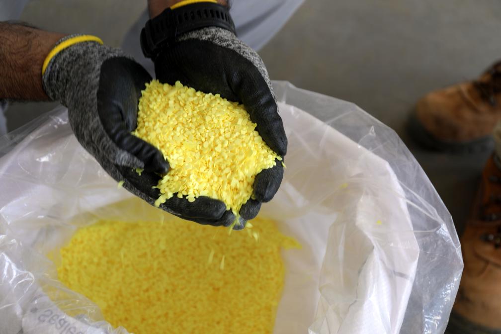 这是6月28日在伊拉克瓦西特省拍摄的艾哈代布油田中心处理站生产的硫黄。新华社发(哈利勒·达伍德摄)