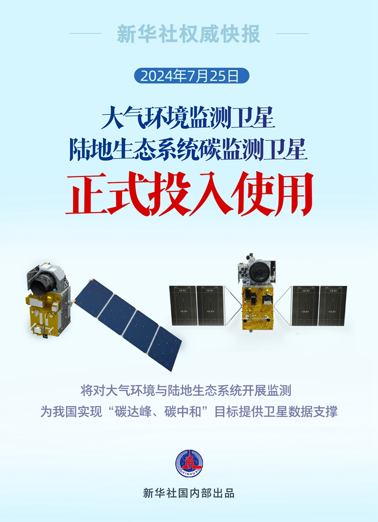 新华社北京7月25日电(记者宋晨)大气环境监测卫星首次实现全球全天时1PPM高精度二氧化碳柱浓度探测;陆地生态系统碳监测卫星实现对森林植被高度、生物量、叶绿素荧光的定量遥感探测,提升我国和全球森林碳汇监测能力。记者25日从国家航天局获悉,两星今日起正式投入使用,将对大气环境与陆地生态系统开展监测。