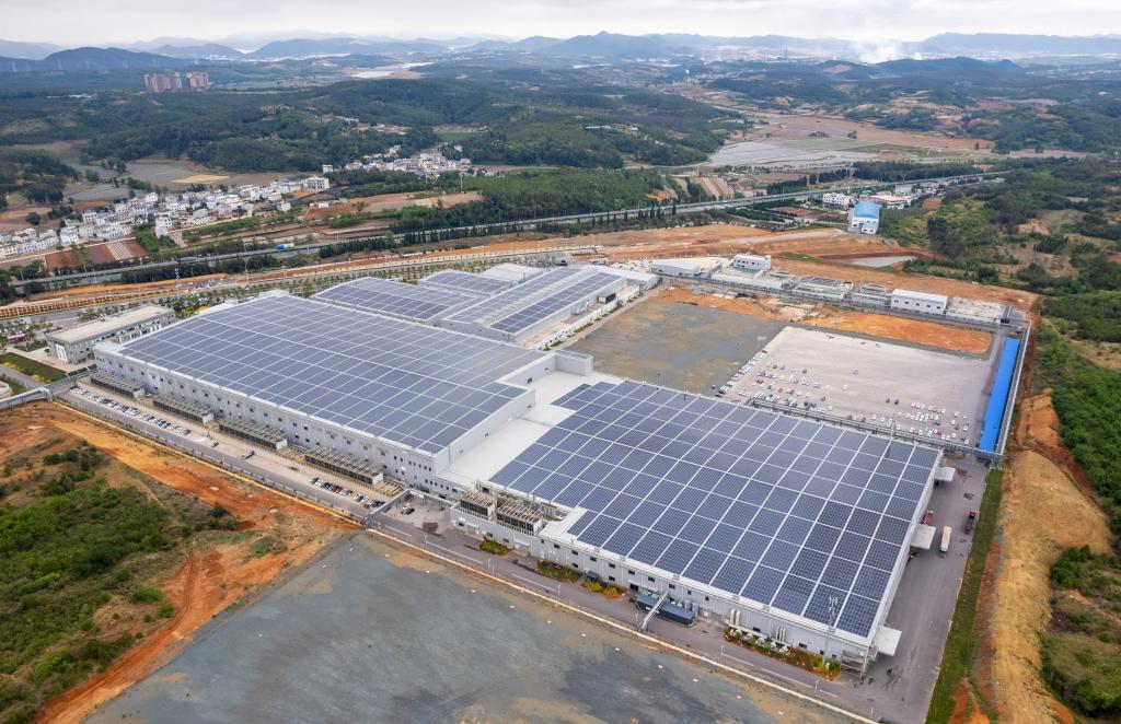 这是2024年5月15日拍摄的曲靖隆基硅材料有限公司的屋顶分布式光伏电站(无人机照片)。新华社记者 陈欣波 摄