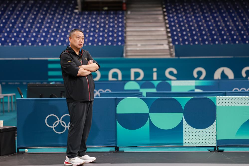 7月24日,中国乒乓球协会主席刘国梁在场边观看训练。新华社记者 刘续 摄