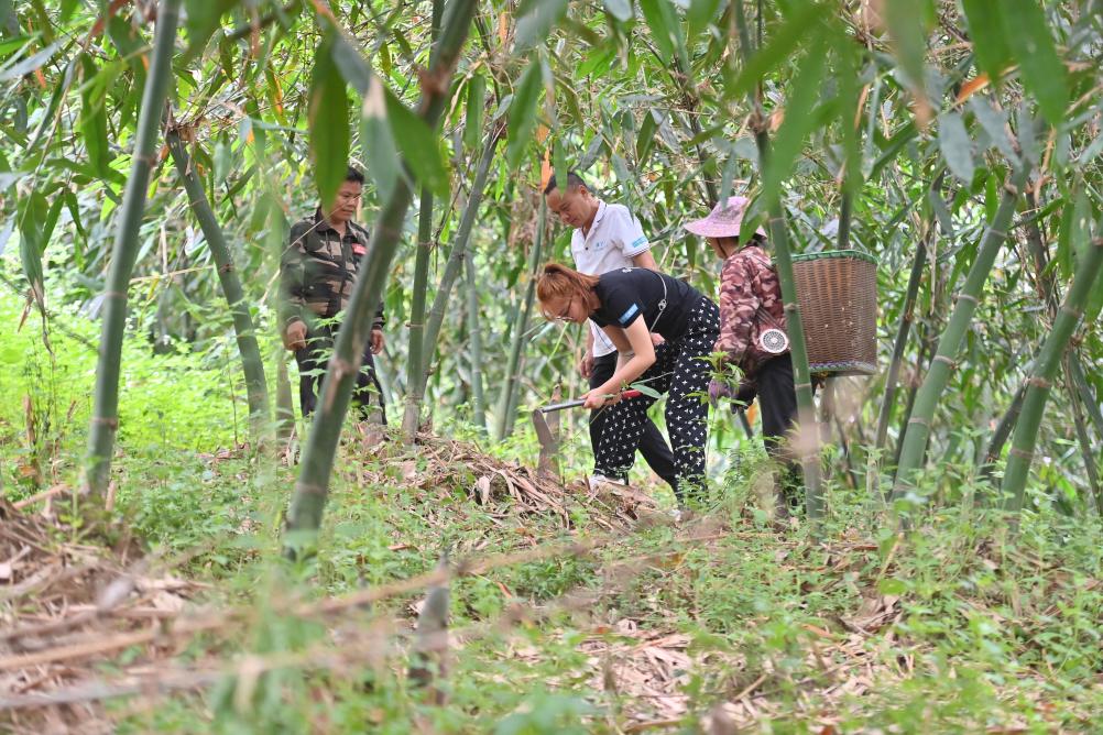 颜茜茜在竹笋种植基地采收竹笋(7月23日摄)。