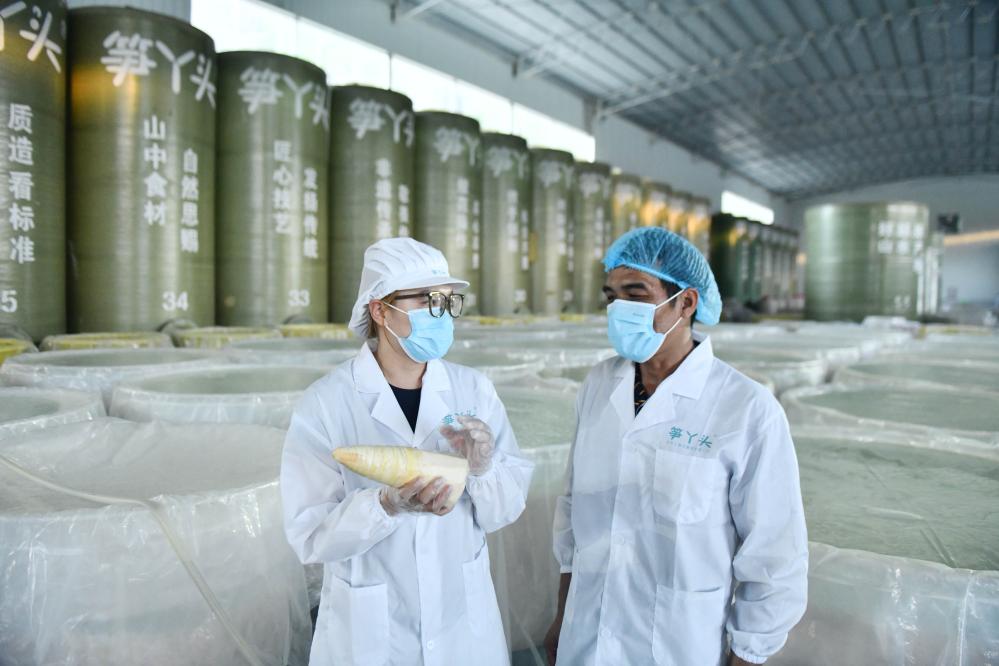 当时柳州螺蛳粉产业正迎来快速发展期,螺蛳粉原材料市场潜力巨大。颜茜茜和父亲颜建条成立了农业公司,采用“公司+种植基地+合作社+农户+加工厂”的经营模式,发展竹笋种植、研发、腌制产业,探索传统腌菜产业规模化、高品质生产新模式。颜茜茜也从“青春靓丽的航空地勤小姐姐”,转变为“撸起袖子在田间地头和乡村工厂间勤劳奔走的‘笋丫头’”。