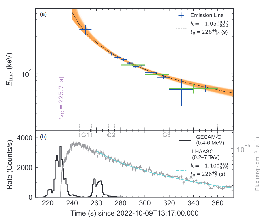 GRB 221009A的谱线能量随时间以幂律演化。(中国科学院高能物理研究所供图)