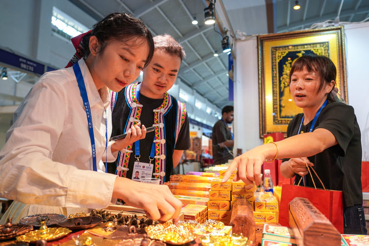 步入昆明滇池国际会展中心南亚馆,异域风情扑面而来。巴基斯坦的铜雕艺术品、尼泊尔的羊绒制品、阿富汗的手工地毯……每件商品都散发着独特魅力,参观者可以“一站式”采买南亚商品。