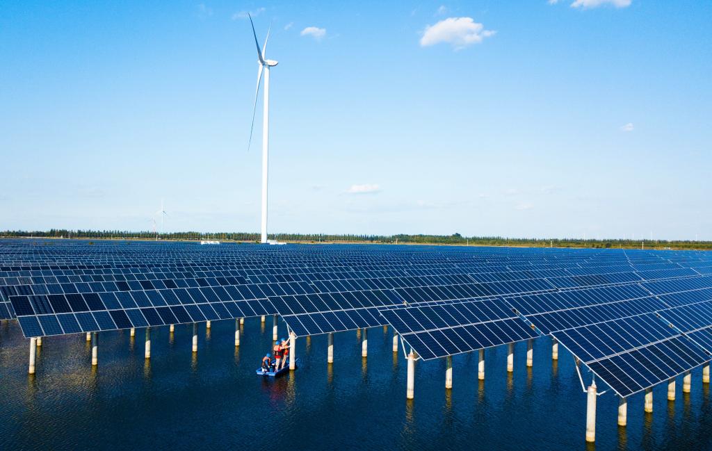 国网天津电力工作人员为新能源发电项目开展现场服务。(国网天津电力供图)