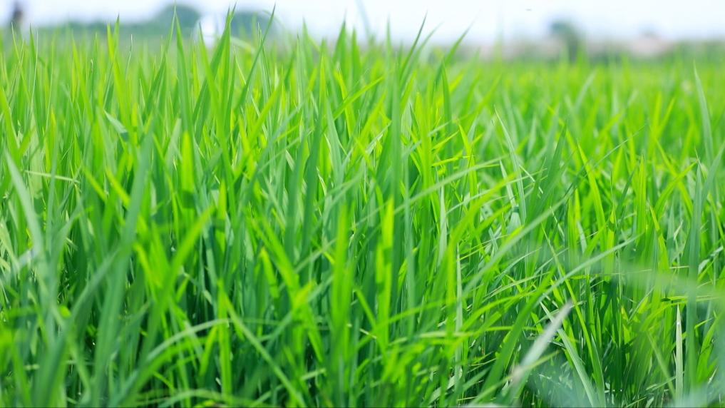 盛夏时节,万物蓬勃。黄河之滨,绿意满眼。阳光下的稻田里,水中秧苗泛着油绿。