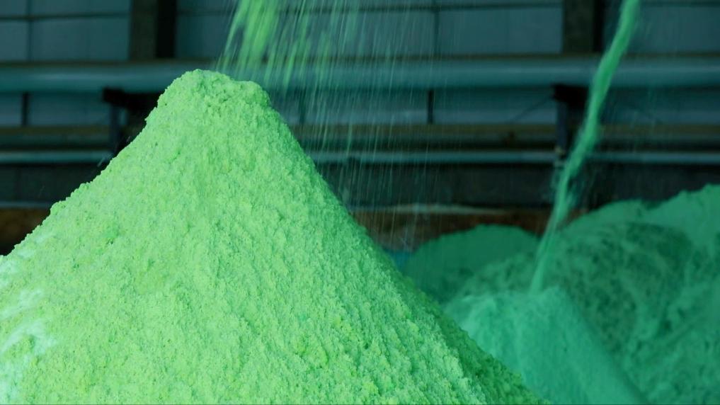 近几年来,白银市推广使用硫酸亚铁进行盐碱地改良。硫酸亚铁俗称“铁肥”和“绿矾”,能够通过化学中和反应降低土壤的碱性,同时置换出土壤中的钠离子,减少有害盐分的积累,从而改善土壤性质,为植物生长创造更有利的土壤环境。自2021年起,作为连接工业与农业之间的桥梁,硫酸亚铁在白银当地实现了就地产出,就地消化,成为改良土壤的“魔法剂”,使这里更多的盐碱滩变成了“米粮川”。